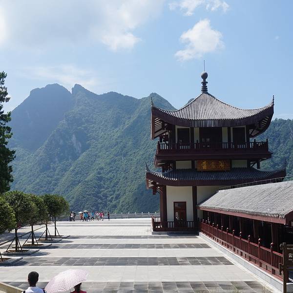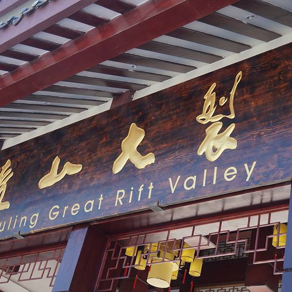 武陵山大裂谷景区位于重庆市涪陵区城东南约40公里的武陵山乡境内,系国家4A级旅游景区。景区面积29.96平方公里,平均海拔1300米,山势奇骏多姿,原生植被丰富,种类繁多,共有2000余种野生植物和200余种野生动物;空气清新宜人,生态环境极其优良,山、林、泉、洞、瀑、崖、湖、潭、峡、坑、缝一应俱全,旅游资源极为丰富。十里大峡谷雄阔壮美,谷底奇石叠垒,溪流淙淙;天然绝壁宛如万里长城,绵延数里;地缝、暗河神奇壮观。景区以地球上古老的“伤痕”—剧烈地壳运动所致绝壁裂缝称奇。世界奇特的近距离反向地质构造——天门奇险,状如薄刀,铜墙铁壁连绵千米,令世界各国地质学家称奇叫绝。 游客中心: 武陵山游客中心,按照国家5 A级旅游景区标准设计和建设,大气磅礴、风格典雅、功能完善。整个游客中心由游客接待大楼、游客集散广场、生态停车场三部分组成。占地近200亩,建筑面积1.5万平方米。 云雾阁: 云雾阁所在位置海拔1200米,因一年四季云雾缭绕而得名。是武陵山大裂谷景区又一绝 佳观景平台。天气晴朗的日子,云消雾散的时候,从这里可以望见百里之外的武隆县弹子山,甚至连弹子山上风力发电站的一架架风车也清晰可见。从云雾阁俯瞰景区,可谓云蒸霞蔚、如诗如画! 天门洞索桥: 两公里范围内大规模横向、纵向、反向地质构造带奇观,其状如薄刃锋利无比,铜墙铁壁连绵千米,令世界各国地质学家称奇叫绝。更是被国家地理杂志评选为全国100个推荐拍摄点之一。 云梦溪: 走进溪流淙淙,桃李芬芳,田园牧歌的桃花源般古朴村寨,在此悠闲小憩,品武陵特色美食,不亦乐乎。 古月坊: 古乐坊建于绝壁之下,溪流之上,与两岸青山相依,形成“高山流水遇知音”的布局。在这里,陈列着历史悠久的巴渝古乐器,展示了独具风情的巴渝歌舞,让您穿越时空,感受巴国故都音律的永醇魅力! 祈愿谷: 绝壁舍身崖之下,百年福树与亭台楼榭相映相衬,喝一碗“摔碗酒”,将寄托着满满良愿的祈愿带系在福树上,悠享林间静谧祥和,许下今生美好愿望。 青天峡地缝:被誉为地球古老的“伤痕。”全长1500米,平均深度300米以上,深达600米;极窄处不足2米触手可及,是地貌与亿万年地壳运动共同作用的结果。于此拨云见日,偶遇心中的一米阳光。 武陵泰斗: 42.6度极限坡度,垂直落差约300米,斜长634米,一索彩厢斜逸而出,寻芳探幽,千寻峡色尽收眼底。