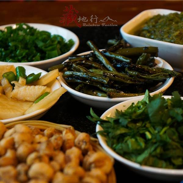 - 先上来一桌子小菜和酱料,都很好吃。但是拉萨餐饮物价就是高的离奇,好吃的又少,所以为了这口鸡汤就忍了吧