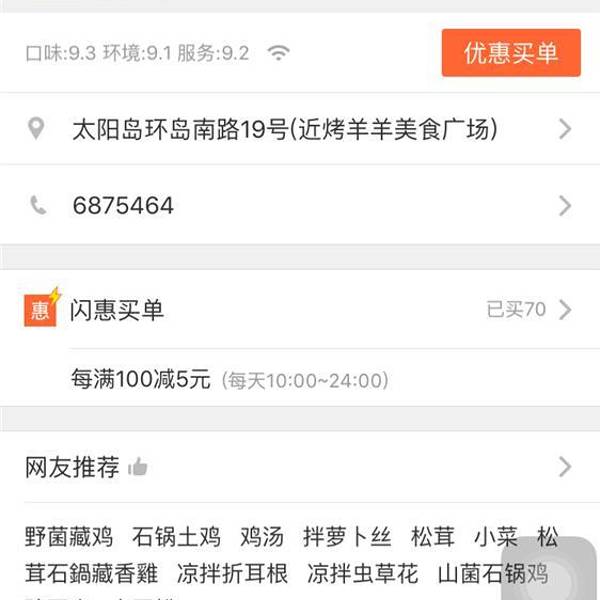 - 石锅炖鸡加上板栗,汤汁泛黄,味道香甜,自调蘸水口感也不错。朋友还点了四个菜,其中凉拌虫草花最赞