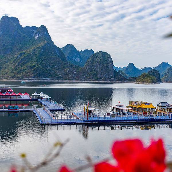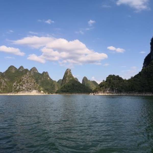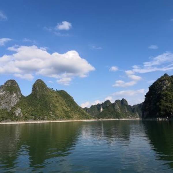 这里湖面碧水连天,波光粼粼,四周群山环抱,石峰依肩并立,青山倒影浑然一体。我11月份来的时候,正好赶上景区大门在维修,所以...这里有“水上桂林”,中国“亚龙湾”的美称。