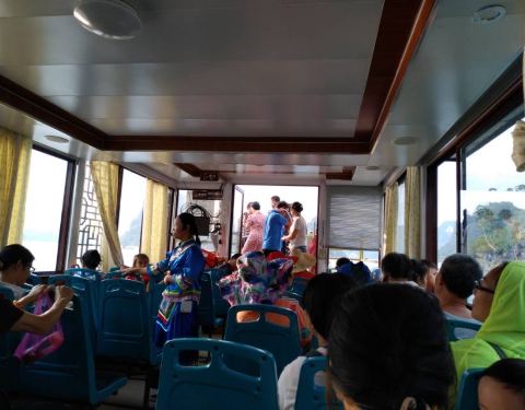 坐船游湖欣赏湖中群峰,进大龙洞一探溶洞秘境。