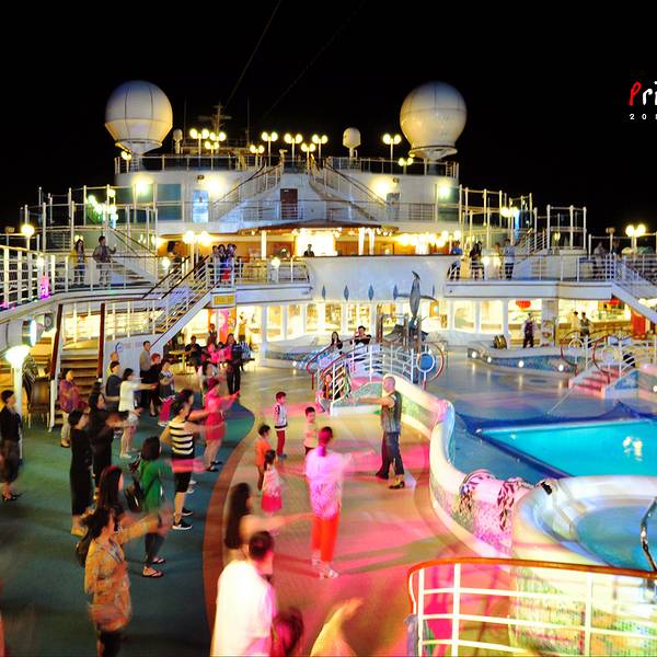 美轮美奂的甲板,梦幻一般的夜晚,狂热的人群,还有那吃不尽的美食,在"东方公主号"邮轮上的午夜派对上,一顿丰盛的大餐不仅满足了您的胃,更是愉悦了您的眼睛。完美的游轮甲板生活并非无憾,遗憾的是没有那么大的胃口。