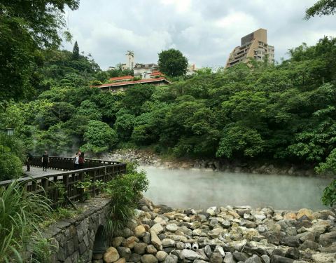 温泉博物馆是免费的,参观需要脱鞋,能看到很多北投的历史,值得去看看。非常不错温泉博物馆是免费的,参观需要脱鞋,能看到很多北投的历史,值得去看看。跟着人群一路走到温泉 空气里弥漫大片的水汽和硫磺的味道。然后在公共泡脚池里泡了泡腿脚 疲惫一扫而光。非常不错!