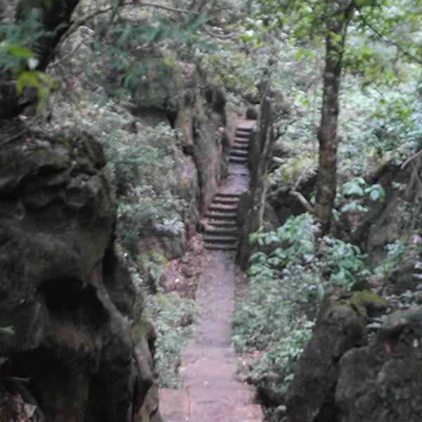 莲花峰上的观音洞,古木葱郁,四季山花灿漫,地表较大。观音洞口共有3处,相距约60米,溶洞宽大,长500米、宽6米多,高达10米,洞内分为3层,其中中层较大,内有一厅,长15米,宽6米,高10米,厅内壁岩面沟沟纹纹,图案奇特。