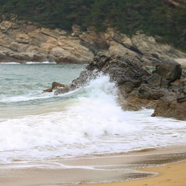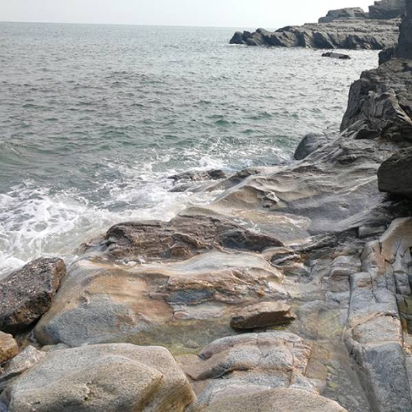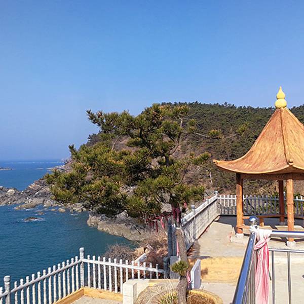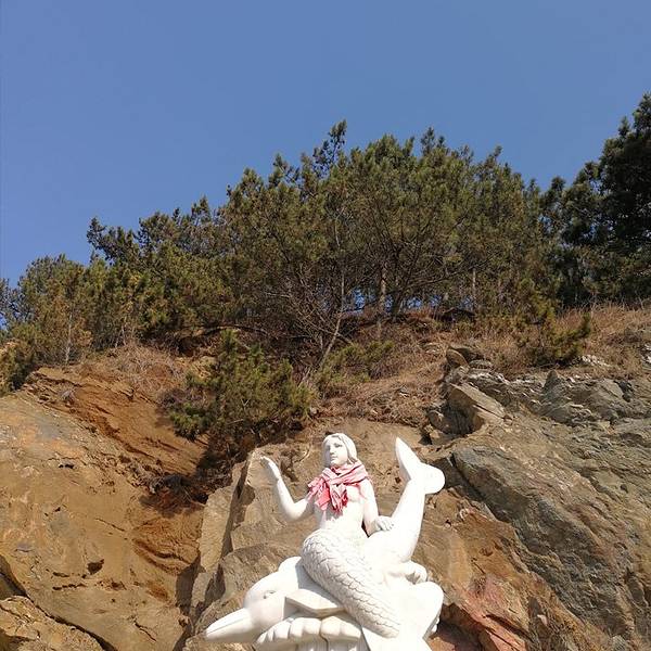 哈仙岛祥瑞园是一座鹅卵石滩涂与祈福的小公园组成。依山面海而建的祥瑞园,海神娘娘面向大海,背靠青山,保佑渔民出海平安丰收,观景台可以看到海天一线景色,“神龟探海”、“千年灵芝”、“百年不老松”是形似的岩石组成并附有传说。我更喜欢这里的风景,让人心胸开阔。而公园下方的鹅卵石滩涂,是哈仙岛另一面大海,大海青绿色,铺满了鹅卵石,圆润而光亮的鹅卵石及礁石,是小朋友的乐园,翻石头,捉螃蟹。