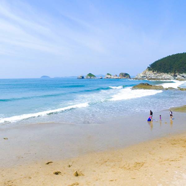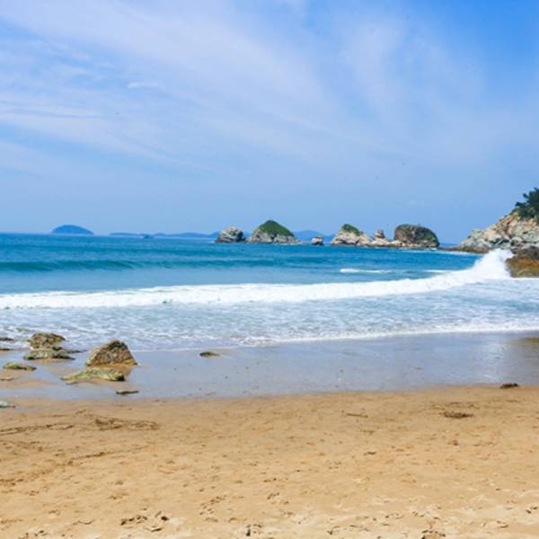 哈仙岛金沙滩沙滩细软,温润细腻,虽然海滩不大,但是青山环绕、礁石嶙峋、海水清澈,金色的沙滩,碧海蓝天,在这里游玩无论是初夏还是晚秋,都是理想的避暑、亲子游玩、团队拓展的好去处。