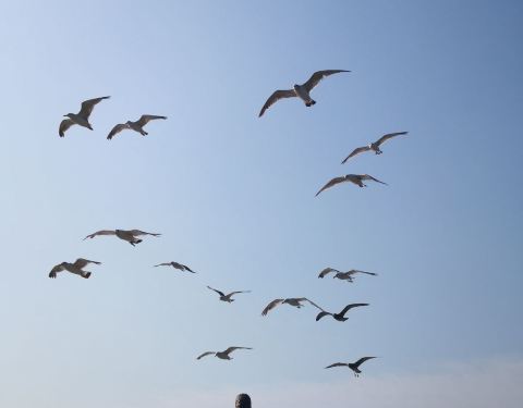 9:00开往哈仙岛的船,大量的游客浩浩荡荡的上船,而我没有选择在船舱中坐着,因为在来之前看了游记,到达哈仙岛的时间大概只有50分钟左右,在甲板上喂喂海鸥,看看风景过得很快,所以径直走向船的甲板,找到了一个好的位置,拿出了提前准备的香肠和面包,就等着开船、喂海鸥。抵达哈仙岛