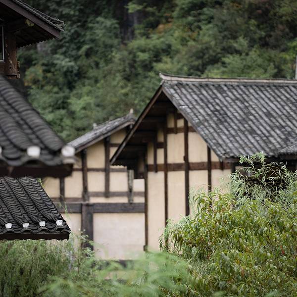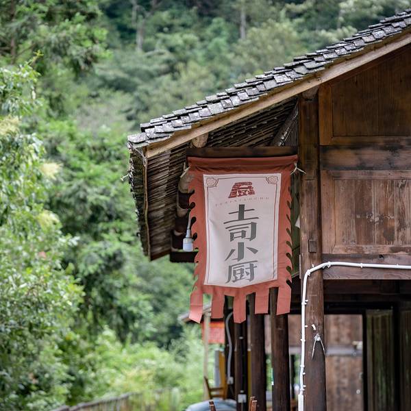 售票处门前的大伞,从外面看挺丑的,没想到拍出来效果还不错。遗憾啊遗憾!下山的途中遇见很多民宅接近海龙屯,偶遇一处小溪,不少当地人带着孩子在玩水。