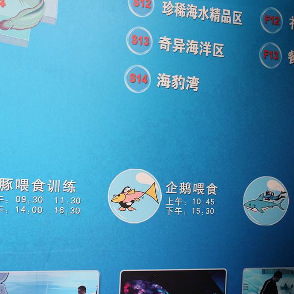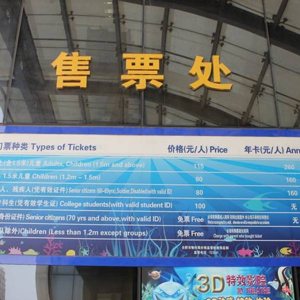 【注意事项】1.网上购票取票有专门的窗口,购票窗口有提示;2场内有各种表演如海狮表演、美人鱼表演,入口处右侧有表演时间,可以拍照留存,到点就直奔过去欣赏。
