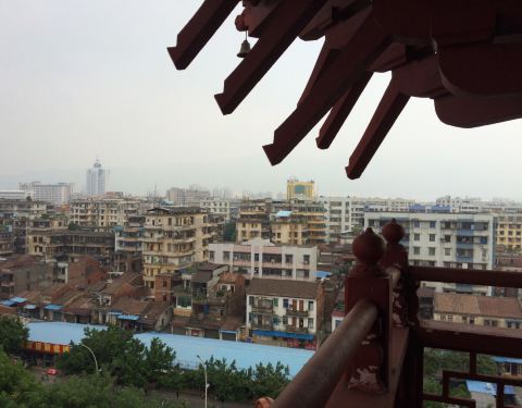 登楼眺望,城内外景致尽收眼底,顶楼展览着反映该楼楼史的图片和字画。