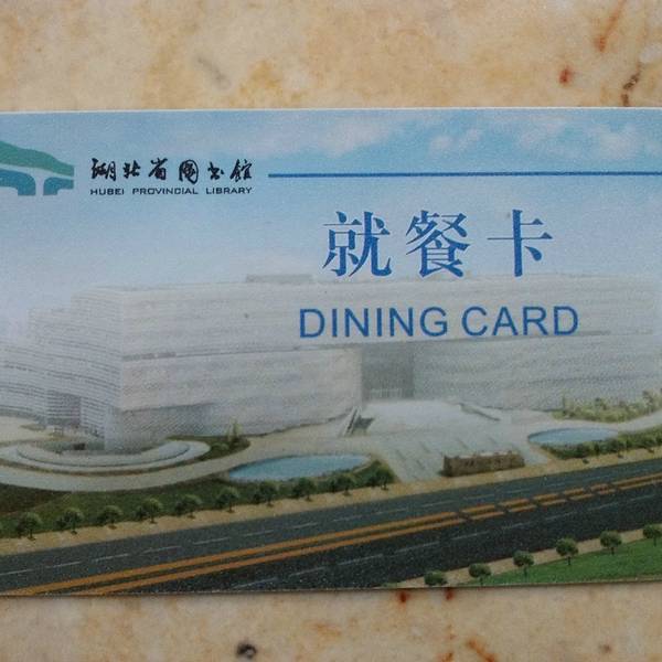 湖北省图书馆新馆的餐厅位于图书馆地下一层,从二层或一层大厅的右手边乘坐电梯或走楼梯就可以达到。我是双休在图书馆看书,晚餐到地下一层去就近解决,需要提醒大家的是,如果是没有借的书,是不能带进餐厅。 图书馆的餐厅就餐面积很大,需要先办一张就餐卡预存30元,10元是押金。然后再到买饭窗口购买自己所需的餐食,通常仅三类选择,一类是15元一份的套餐两荤两素,还有一杯酸奶;另一类就是江西蒸汤,排骨藕汤、海带排骨汤、乌鸡山药汤等,价格从7元到20元不等,排骨藕汤可以根据就餐者要求加煮粉丝,需要再加收5元;再有一类就是市场上很火的黄焖鸡米饭。我买了一个套餐和排骨藕汤,感觉挺卫生,价格也适中吧,关键是方便,下楼吃完饭,还能上楼接着看书呢,不耽误时间。吃完饭需要自己将碗和筷子收拾到餐具收纳区,就餐卡可以在离开前退卡,也可留着下次再用。 需要提醒读者一件事情,餐厅就餐时间需要把控好哈,早餐:7:30~8:30;中餐:11:00~13:30(周末14:00);晚餐:17:00~18:30。错过时间会饿肚子哟!~~~