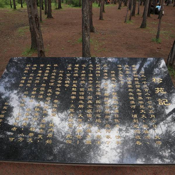 公园也是在5-6火灾纪念馆旁。据说这是5-6火灾幸存的松树林漠河县城区中的一片松树林,林区不是很大,但松树高大丛密,适合夏天林中乘凉。据说这是5-6火灾幸存的松树林。公园也是在5-6火灾纪念馆旁。