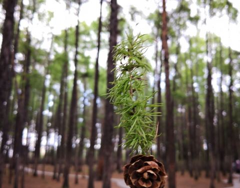 松塔,像一朵美丽的玫瑰花,有绿色的有红色的。1983年建为松苑公园1971年县城初建时,于县城中心保留一片原始森林,供游人观赏和净化城区大气。1983年建为松苑公园。