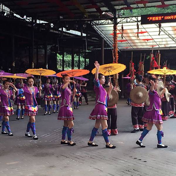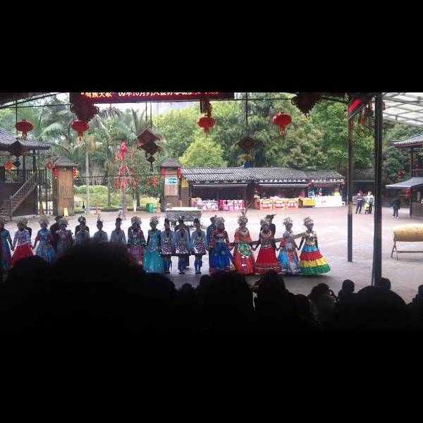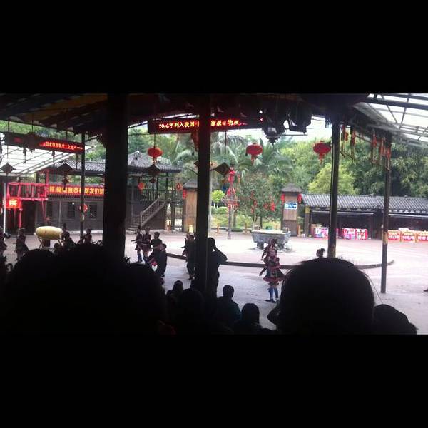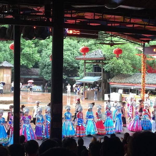 景区其实是人工的溶洞,还有一条铁索桥,感觉值回票价的就是表演了
