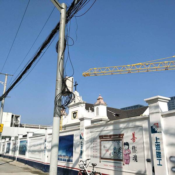 特意找过去,发觉董家渡地区的建设是如火如荼。 远远可看见教堂的尖顶