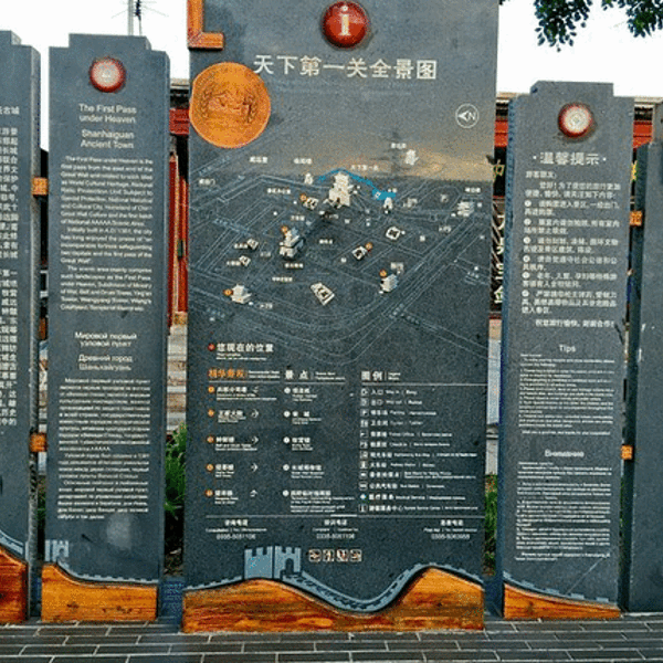 金骆驼 老龙头景区-古风古韵网上查看美食,推荐古城里的四条包子,一大早,我们便来到四条包子铺,由于来的早,人还是不那么多,到后来都排了很长的队伍。包子是1元一个,而且只有一种馅的:猪肉大葱,有大蒜可以免费吃,这地方吃饭还是很经...网上查看美食,推荐古城里的四条包子,一大早,我们便来到四条包子铺,由于来的早,人还是不那么多,到后来都排了很长的队伍。包子是1元一个,而且只有一种馅的:猪肉大葱,有大蒜可以免费吃,这地方吃饭还是很经济实惠的。景区里的价格还是很便宜的,中午的时候队伍都排到大道上了,景区的超市有的就是平价超市,买饮料都和正常超市一个价格,但有的超市会加价,所以要问清楚。古城内还有很多出售花生糕、芝麻糕的,可以根据自己喜好购买。从四条包子出来就能看到在古城中间有个城楼叫钟鼓楼,从钟鼓楼往东走就到了“天下第一关”的售票口,单个天下第一关门票40(旺季),还有50的套票(含天下第一关、钟鼓楼、王家大院),还有120套票(天下第一关+老龙头+钟鼓楼+望洋楼+王家大院+观光车)这是不是从北京八达岭长城复制的啊?(没去过八达岭) 哈哈 不到长城非好汉!一路上有很多讲解员,可以花钱雇一个,也可以跟着有导游的旅行团,他们会把每一个景点的历史及发生的故事给详细的讲解,通过历史会是你对这座城有一个更深的了解。本来想蹭别的团讲解的,但因为孩子太活泼,不是跑就是跳,根本不在一个地方停留,不听指挥,只能看护好孩子,跟着她走马观花的在城墙上走了一圈。