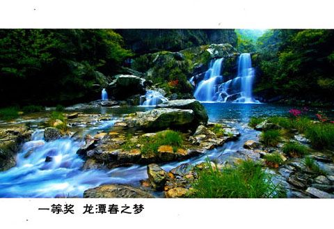 《龙潭碧水印蓬莱》悬崖峭壁飞云彩,匡岳银河壑口裁。万马奔腾风怒号,双龙出岫悬空来。倾珠倒玉龙潭溅,飞瀑悬冰雪浪皑。春夏秋冬双瀑挂,龙潭碧水印蓬莱。(七律)