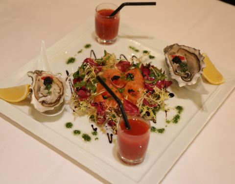 - 也很新鲜,海鲜,牛排,沙拉,搭配得很完善,如果要点酒的话,价格会贵,这也是预料之中的事,人有限...