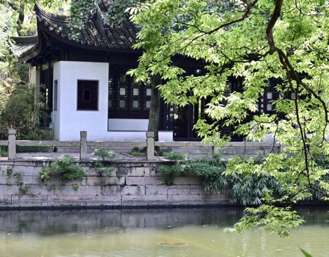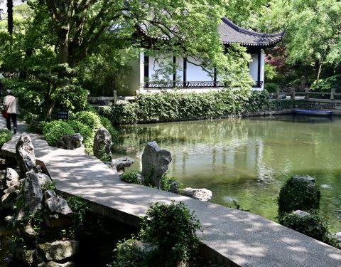 曲水园位于青浦城区,是上海五大古典园林(豫园、古漪园、醉白池、秋霞圃、曲水园)之一,曲水园小巧林珑,但假山、石桥、亭阁、池塘俱全。园内古木茂密、花草葱郁,山墙上披满爬山虎,漫步园中心旷神怡,常能见到老人在此唱曲下棋;园林的东部紧邻环城河,可坐在河边长廊中小憩、享受河畔风光,无限惬意。曲水园始建于清朝乾隆年间,它紧挨着青浦城隍庙,起初是城隍庙的附属园林,由于屡遭战火而多次兴废,现在的曲水园是在原址上修缮改建而成的。从公元路上的南大门进入,左手边是以建筑为主的西园,这里楼堂华美,有得月轩、有觉堂、夕阳红半楼等楼阁。其中夕阳红半楼建在用太湖石垒成的假山上,楼下是盘旋曲折的山洞,很有意思。中园以山水见长,是曲水园的中部主体部分。这里有荷花池、凝和堂、花神堂等景点,荷花池畔有小濠梁、迎曦亭、恍对飞来等亭榭可赏池景,夏季还可赏荷花。荷花池北部有一座大假山称为“小飞来”,这里是园林的中央,站在山顶的“九峰一览阁”可居高俯视周围景观。东园紧挨着东边的环城河,这里的特点是充满野趣。沿着摆满盆栽、绿荫相伴的石头小径,可通往听橹阁、牡丹亭、机云亭、绿波廊等亭阁。绿波廊是一条临河而建的长廊,蜿蜒一百多米,坐在这里听听音乐吹吹河风,很是惬意。而站在河对岸往绿波廊这边望去,河面上倒映着绿树、蓝天和长廊,也相当好看。石鼓文书艺苑位于曲水园西北部,是展览石鼓文及有关书法作品之处。石鼓文是我国现存早的石刻文字,文字刻在十块鼓形的花岗石上,每块刻一首诗。书艺苑的花圃里排列着十块石鼓仿制品,基座上都附有用现代文字写成的诗文大意,以方便游客阅读,有兴趣的话可以去看看。