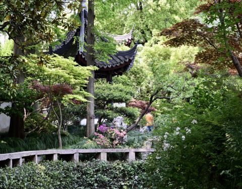 漫步在绿荫和花香中,感受古典园林的幽静与清凉。