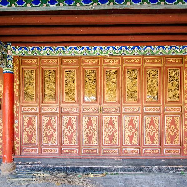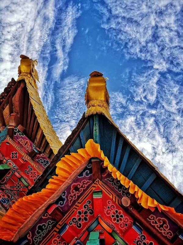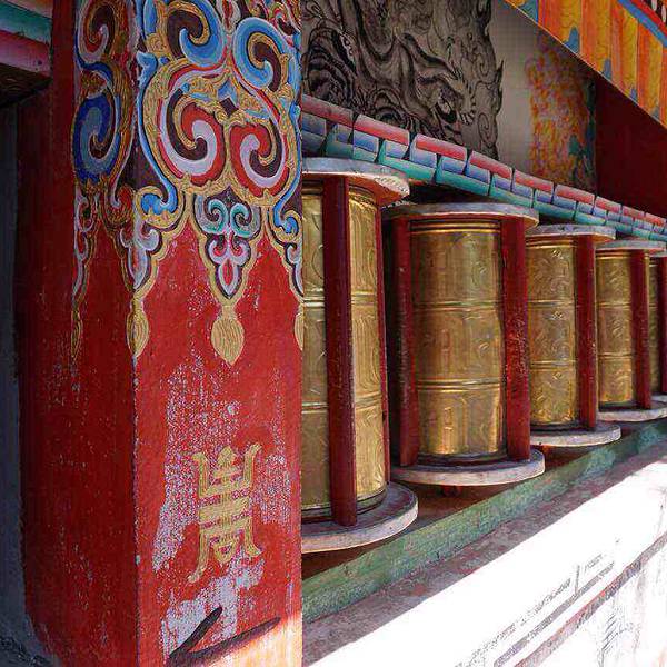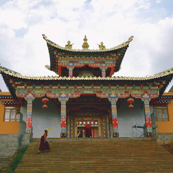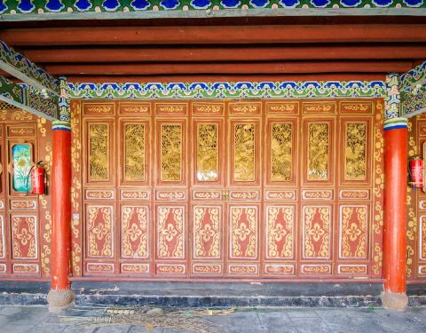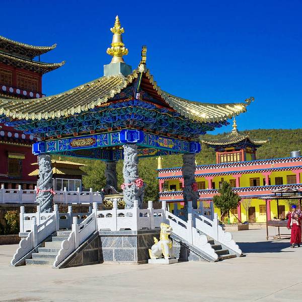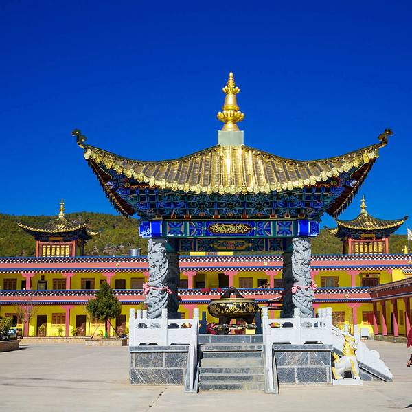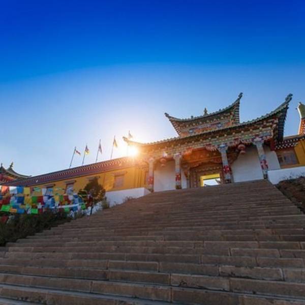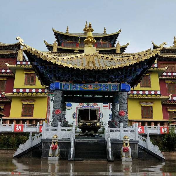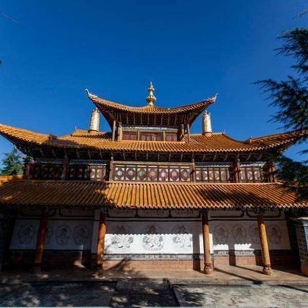 大殿为三重檐楼阁,寺顶覆瓦,雕梁刻柱,明显不同于藏区碉房式建筑,体现出汉、藏、白、纳西建筑艺术交融的特色。左右两侧檐柱粗重踏实,并作双柱础处理,即在覆盆式柱础上置木雕莲花柱础,以便于更换糟朽檐柱,可谓独具匠心。寺前湖光山色,农舍田畴,错落有致,景致极佳。不错的旅行。 展开