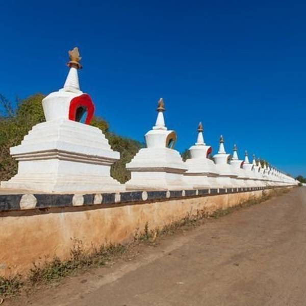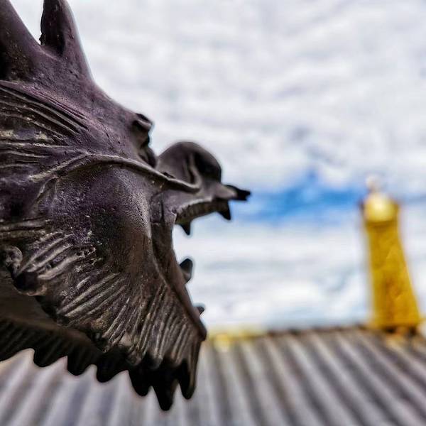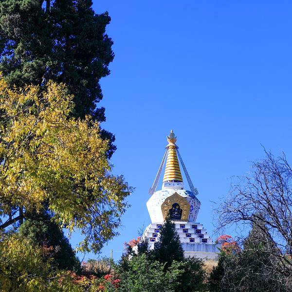 推荐深秋的时候,银杏黄了最美!门口的佛塔很长很长。
