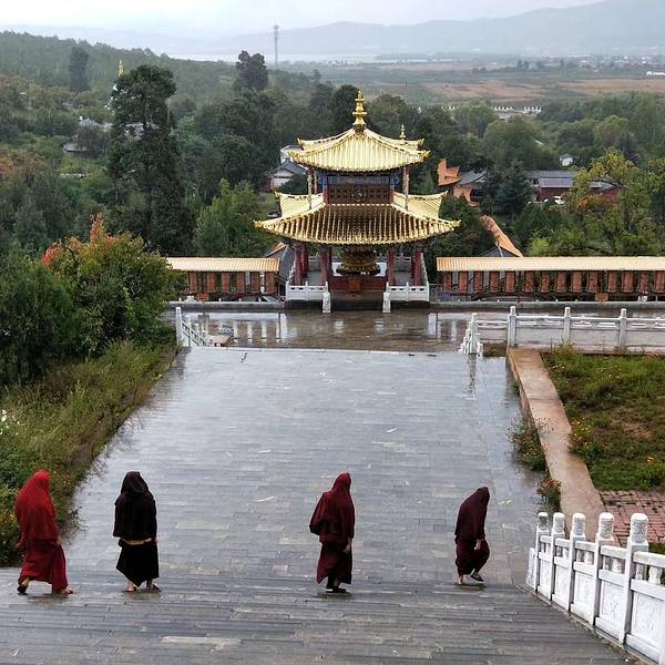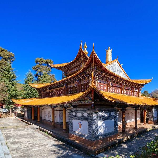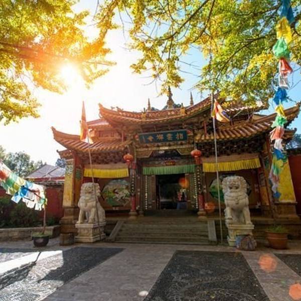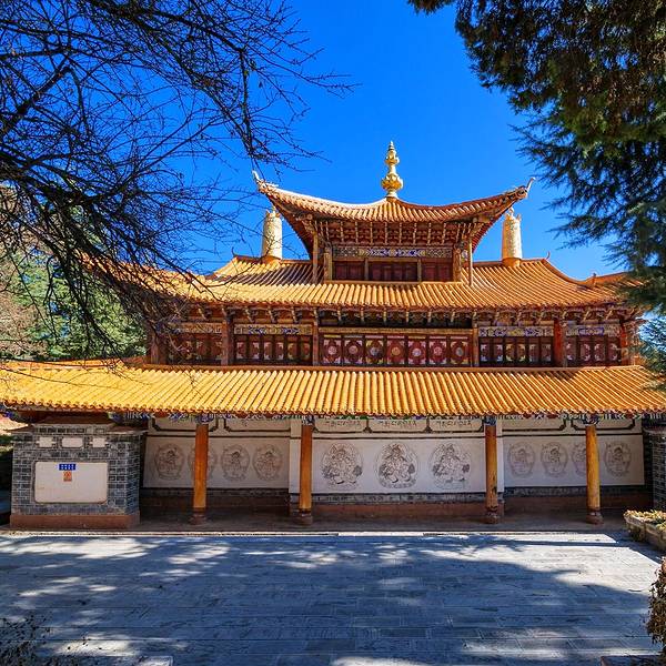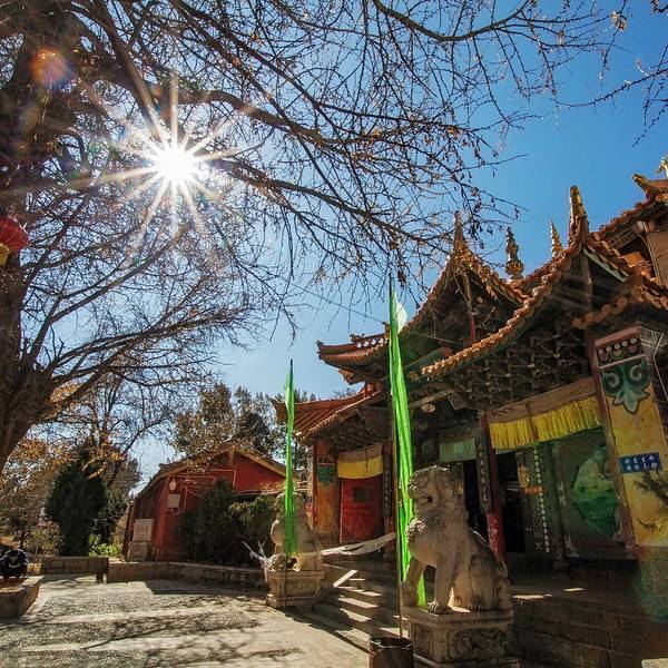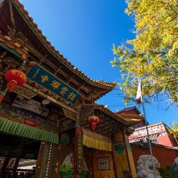 推荐深秋的时候,银杏黄了最美!指云寺位于丽江古城西18公里拉市坝西部山麓。台基高达2.8米指云寺位于丽江古城西18公里拉市坝西部山麓。建于清雍正五年(1727),为丽江五大寺之一。该寺原有13院,现存1个大院及5个小院。大院为二进院落,有山门、佛殿、配殿、僧堂、厨库、浴室、西静。佛殿平面呈长方形...指云寺位于丽江古城西18公里拉市坝西部山麓。建于清雍正五年(1727),为丽江五大寺之一。该寺原有13院,现存1个大院及5个小院。大院为二进院落,有山门、佛殿、配殿、僧堂、厨库、浴室、西静。佛殿平面呈长方形,阔五间,三重檐楼阁式建筑,正中为四方形钻尖顶阁。底层为法堂,上两曾为藏经楼。六根高12米的通天京柱高耸其间,东南西北十二角雕龙画凤飞檐欲博九天。内外檐装修皆精工镂雕、彩绘。台基高达2.8米。殿宇巍峨、富丽、气势非为在拉市海附近,所以其实是可以去拉市海的时候一起去的!