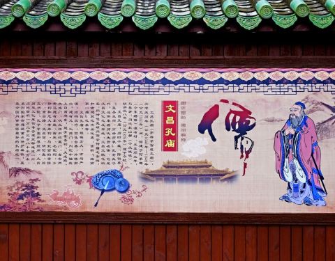 文昌孔庙始建于北宋庆历年间,明洪武八年(1375年),它历史悠久,而且古建筑群的完整程度在海南省算得上是数一数二。文昌孔庙以它古色古香的明、清两代建筑工艺和浓厚儒家文化氛围,深深地吸引着莘莘学子和国内外各界游人。 来到文昌孔庙门外,便能感受到这里的古香古色,大门前立有孔子行教像。步入大门,那斑驳的古建筑显现出了文昌孔庙的沧桑与历史,大成殿内设有孔子神像、孔子箴言、名家书法碑林等。 文昌孔庙是一座不朝南开大门的孔庙,究其原因,不得而知,不过有着一个传说,相传是因为老文昌人曾经立誓:“若文昌未出状元,孔庙就不开大门。”后来孔庙就没有朝南大门,只有一左一右两个侧门。