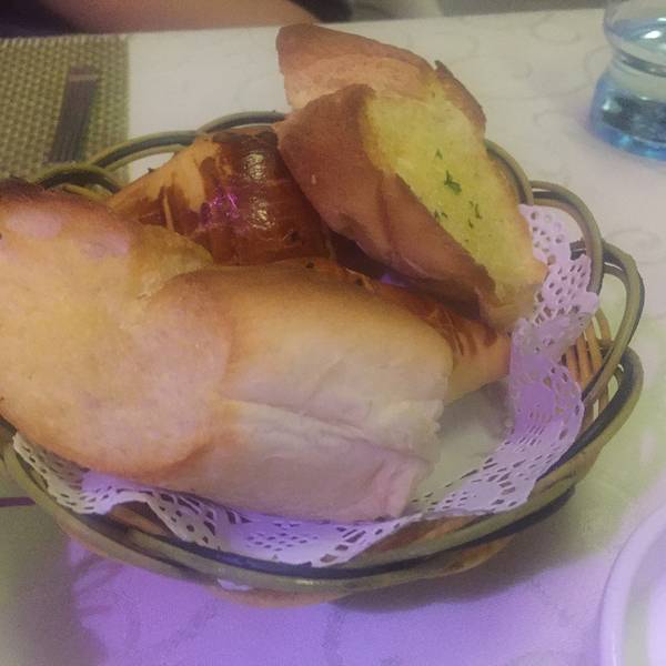 地理位置在蓝天商城的二楼,天水的西餐感觉价格都差不多,两个人是肯定能吃饱的。 有团购,2-3人套餐118,包含了两份牛排,蔬菜沙拉还有扬州炒饭,汤和餐前面包。 整体环境是比较安静的那种,不过因为有团购的原因吧,周五晚上去的时候人还挺多的,靠窗边的沙发座都没有位置了 ,巴洛克式的装修,感觉环境来说是比较高档的了。【牛排】每份带一个煎蛋和一点点蔬菜,基本上是全熟,挺嫩的,但是味道其实和淘宝上买的那种牛排套餐也差不多,团购批量生产的感觉,黑椒酱有点辣。【蔬菜沙拉】量比较少,而且胡萝卜丝和紫甘蓝丝用叉子吃起来真的不方便,放的千岛酱。感觉有点怪怪的,一般的蔬菜沙拉应该不会有这么多胡萝卜丝吧?更像中式拌菜啊。。。【汤】味道有点怪,不过也不是很难喝。【炒饭】还可以吧,和普通的扬州炒饭没区别,但是上的很慢【餐前面包】有四个小面包,一种是蒜香法棍,一种是甜的牛角面包,味道还可以。 团购总的来说性价比还行吧,毕竟环境和服务都是不错的,食物比较一般但是不难吃。 纸巾收费。