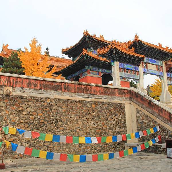 寺院里最热闹的是滚动的五彩经幡和璀璨的金黄色银杏叶做为唯一幸存的皇家陵寝御用寺庙,永福寺显得过于冷清了,中路三进院落,也只有我们两个人。寺院里最热闹的是滚动的五彩经幡和璀璨的金黄色银杏叶。