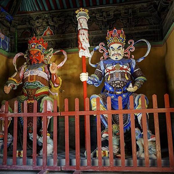 整个寺院主要殿宇均为黄色琉璃瓦顶,余为布瓦顶整个寺院主要殿宇均为黄色琉璃瓦顶,余为布瓦顶。黄灰瓦顶、红色院墙,掩映于苍松之间,高低错落,显示出一幅幽静壮观的古刹风光。 2014-10-19 09:22