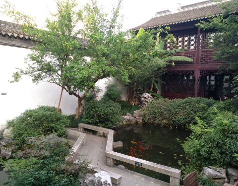 潘宅即礼耕堂,位于平江路中部的卫道观前,是一座非常精致的小院子。免费开放。潘即为清代徽商潘麟兆,古人发家后就要修屋造宅投资不动产,商海沉浮,前人去矣,如今留下美园给后人欣赏。宅子进门处是旅游部门放置的旅游宣传册,有当地旅游部门制作的精彩攻略。宅子现在开发成了高级茶餐厅——礼耕堂,人均300多元。 另外有礼耕茶馆,茶自助56元每位,全天限量50人,怕占不上位置的可以打电话预订,电话为0512-67288815. 茶馆每天都有评弹表演,周一到周五为下午18点到19点30分,周六日及节假日中午12点到13点30分,晚上时间不变。西侧有一个小花园,虽然面积小到几步就能走完,但是这方寸之间却给主人营造出了山山水水的感觉。小亭子建在假山上,两面环水,整体高过院墙,颇有层次感。