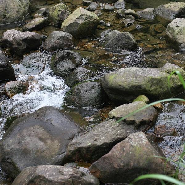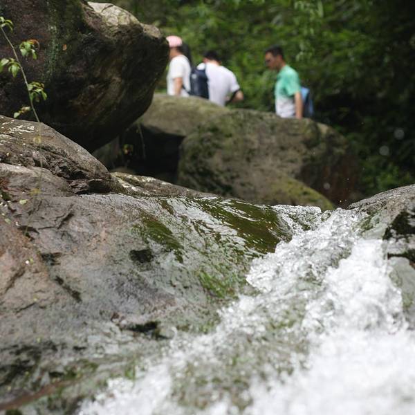 在溪边戏水要非常小心,湿滑不稳的石头可能会带来巨大伤害。