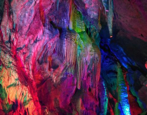 开心的不得了,洞内风景是纯天然的钟乳石,有几处比较宏伟的,抬头看得有十几米高吧,感受大自然的鬼斧神工十一期间去的,还可以,服务人员很多,服务很到位,停车场有专门的指挥停车的人员,网上订票取票也挺快的,进去洞内感觉温度比较适宜,就是稍微有些潮湿,有些路面会有一层薄薄得水气。里面的过道设计的挺好,很...十一期间去的,还可以,服务人员很多,服务很到位,停车场有专门的指挥停车的人员,网上订票取票也挺快的,进去洞内感觉温度比较适宜,就是稍微有些潮湿,有些路面会有一层薄薄得水气。里面的过道设计的挺好,很有趣味性,有的像小桥,还有时上有时下,感觉想在山的肚子里爬山一样,还有几个地方像一线天一样,孩子没见过,开心的不得了,洞内风景是纯天然的钟乳石,有几处比较宏伟的,抬头看得有十几米高吧,感受大自然的鬼斧神工,比较适合带孩子,洞内还是比较深的,可以一边走一表边观赏! 展开