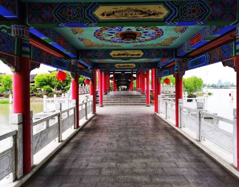 实用 镇国寺塔门票是30元/人。不一会就到了镇国寺塔园,这里四周都绿化得非常好,风一吹还挺舒服的镇国寺塔距今已有1200多年的历史,里面属于古香古色那种感觉,也特别有年代的沧桑感,我们去的时候刚好是阴天,也正好增添了镇国寺的沧桑感,要去镇国寺塔可以坐渡船过去,非常有意思,而且只要两块钱,这条河流...镇国寺塔距今已有1200多年的历史,里面属于古香古色那种感觉,也特别有年代的沧桑感,我们去的时候刚好是阴天,也正好增添了镇国寺的沧桑感,要去镇国寺塔可以坐渡船过去,非常有意思,而且只要两块钱,这条河流可是最古老的运河之一的京杭大运河,运河修缮得比较完好,也是现在世界上里程最长,工程最大的运河。不一会就到了镇国寺塔园,这里四周都绿化得非常好,风一吹还挺舒服的。塔一共有七层,里面古香古色的,有一些雕刻的门窗,两年前是可以上去的,上面楼梯比较陡,上去得小心翼翼才行。现在为了保护这座古塔,已经不给上去了,整个塔的感觉就是经过了乾隆年间的被焚后的重建,却依稀还能感受到一股历史的厚重感。往前走有一排淡黄色的房子,就是天王殿,天王殿里面有很多罗汉,雕刻得也是栩栩如生,里面上香祈福是需要收费的,但是价格不高。寺庙外有一个很大的观音菩萨,往前走就是一个长长的回廊,回廊雕刻得非常用心雕梁画栋。这里的游客据说只有在初一十五的时候才会比较多,所有我们去的时候比较宁静,镇国寺塔周边有很多凉亭,走累了可以在凉亭内小歇一会。
