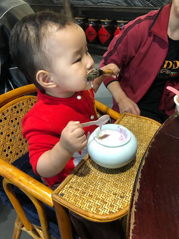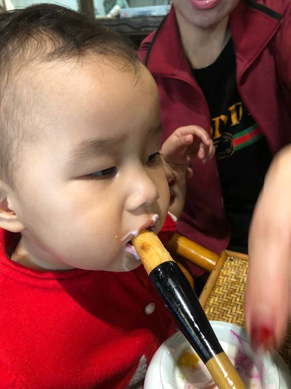 西安赛格广场,长安街吃毛笔酥,宝宝吃的很开心。