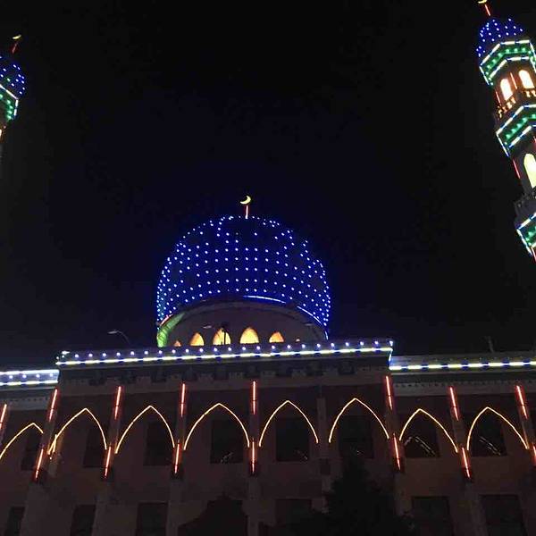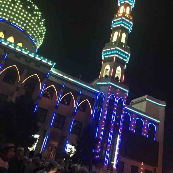 清真寺建筑挺雄伟,免费参观,还有人讲解,又学到了不少知识,挺好。晚上还有彩灯,很漂亮。
