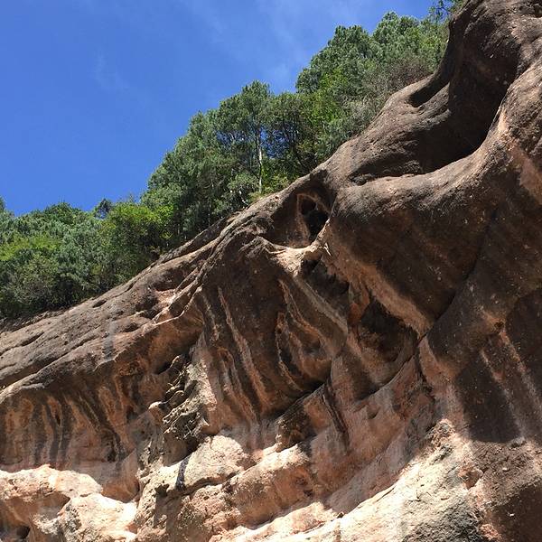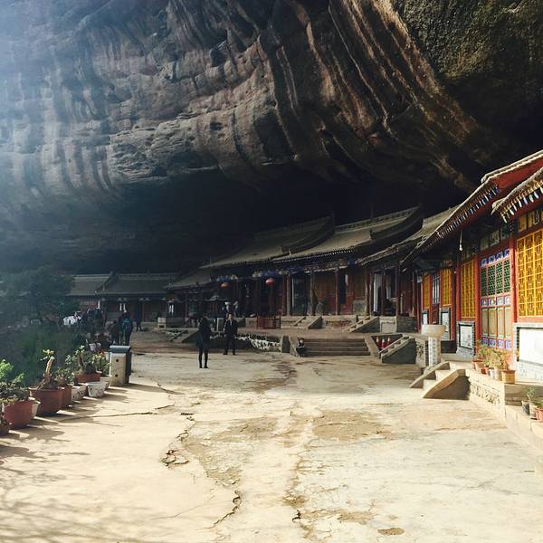 ...将雨水倾斜而下,形成天然瀑布,好不壮观,真希望此时此刻可以来一次倾盆大雨,感受仙人崖的绝美景致净土寺下来步行45分钟就可以走到仙人崖(当然也可以坐车),山上有道教和佛教的庙宇可以参拜。仙人崖景区,苍山、崖壁和天空自然形成天然太极图,大自然鬼斧神工人杰地灵。