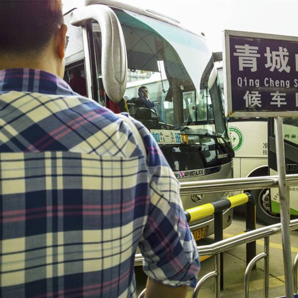 1.下了车走到广场上看到有一些大巴车可以直达。不过等了很久才装了不到十个人出发了。车站离后山10公里的距离。来回票价25元,会发一张票,返程的时候凭票坐车。也可以只坐单程,13元没有票。行程40分钟左右。