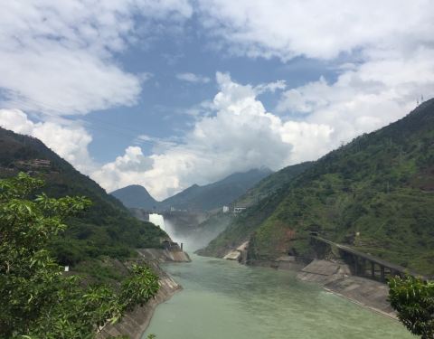 二滩水电站位于金沙江上游,雄伟壮观,气势磅礴,泄水口从百米高处落入谷底,水雾遮天