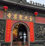 大慈寺据今己有1600多年,古称“震旦第一丛林”。该寺以壁画著称,唐代吴道子、前蜀李升、后蜀黄筌等都在此作有壁画,寺中所藏碑石书法墨迹也丰富。苏轼誉为“精妙冠世”。据记载,唐代名僧玄奘法师奘曾在这里受戒、讲学。寺内有一个不大的玄奘纪念馆。 历史上的寺院,曾经规模宏大,如今所见的这座寺院,是清代重修的。山门殿上方“古大圣慈寺”石匾刻于光绪六年,距今已有120多年,各殿堂石柱上,刻有清代名士顾复初等撰书的楹联。 寺内还设有素斋和茶馆,从这里可以步行到达春熙路。