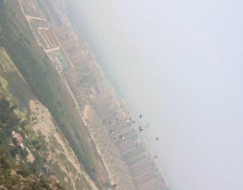 一望无际的湖水,竟然起了波浪,水的尽头,就是美丽的华山