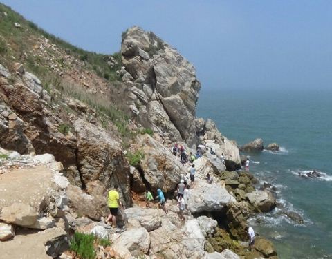 周六傍晚赶到赣榆(现连云港市辖区),与旅游接待处联系好第二天发船的时间(因潮汐变化。每天的时间都不一样,所以这点很重要,一定要事先联系),住下。 周日早上五点三十五到达码头,六点二十检票登船,六点三十出发,游艇大约二十分钟后到达秦山岛。