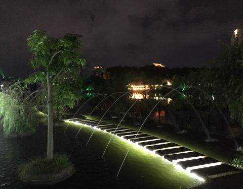 去的时候刚好下完一场雨,空气特别干净,在公园内散步很清爽。湖边有不少灯光,一边漫步,一边欣赏一下湖畔的夜景,比逛商场更有意义,