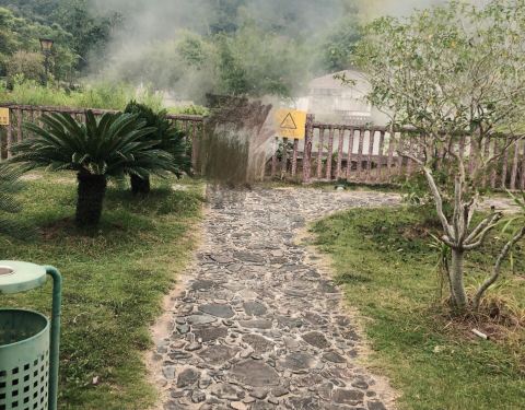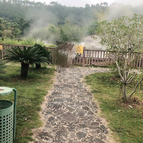 泉眼周围能闻到浓浓的硫磺味道,就像是臭鸡蛋的味道,整个酒店的温泉水都是从这个泉眼出来的,虽然我...