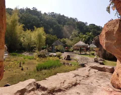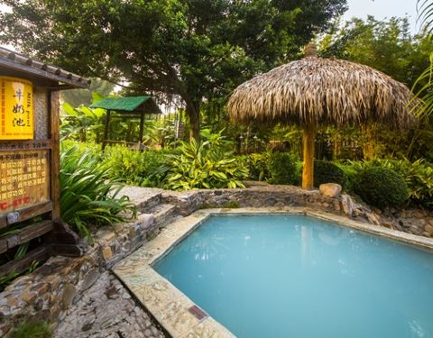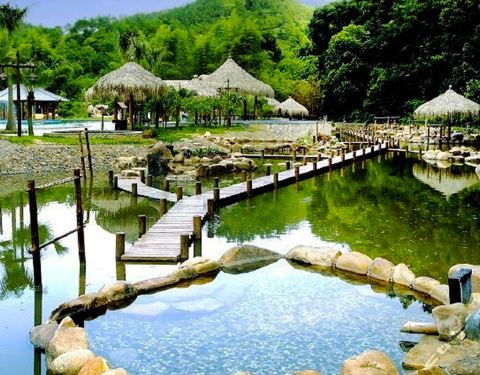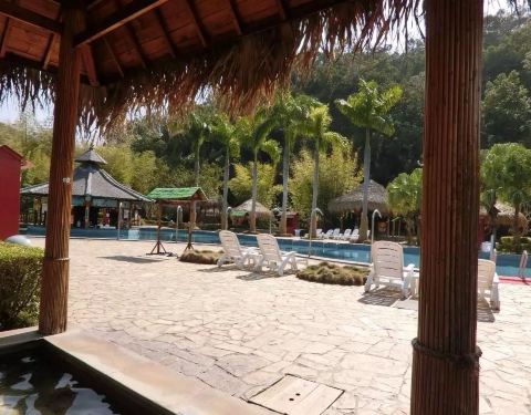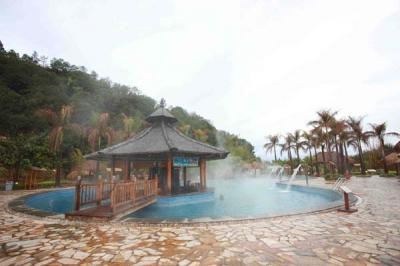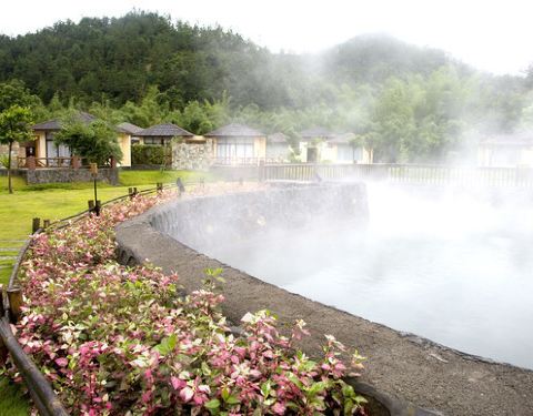 河源御临门温泉度假村位于九和镇。数十个温泉池蜿蜒座落在山林河道中