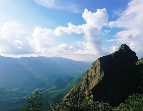 风景真的很美,夏季去比较好,可以避暑,山上云雾缭绕,整个山体路段大致可以分为三部分,下段和上段坡度较大,攀爬较为困难,上半段危险系数很高,两边是悬崖,依石壁攀爬,雨雾较多,容易滑倒,另外海拔越高,风越大,一不小心可能被吹下悬崖,虽然危险但也特别刺激。缺点就是离市中心有点远,最好自驾过去,然后上面有一个比较大的寺庙,可以将车停放在那,然后再徒步爬山。