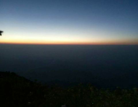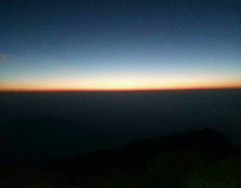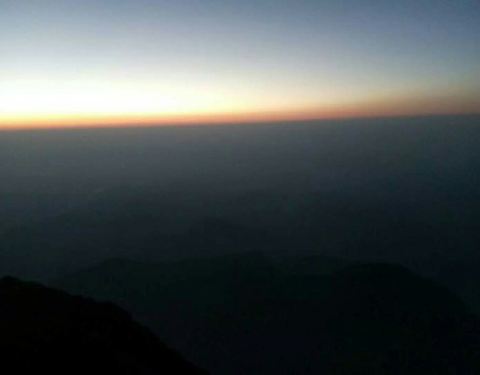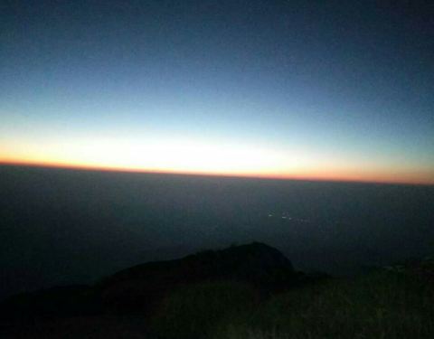 晚上爬的,拿手电照着走,山顶的风很大很冷,感觉都要被吹走了。天亮下山时看到到处是悬崖很恐怖
