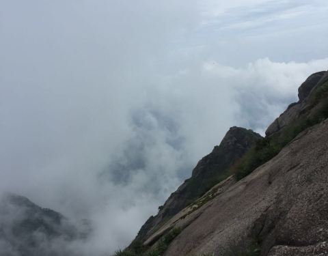 ...壁攀爬,雨雾较多,容易滑倒,另外海拔越高,风越大,一不小心可能被吹下悬崖,虽然危险但也特别刺激