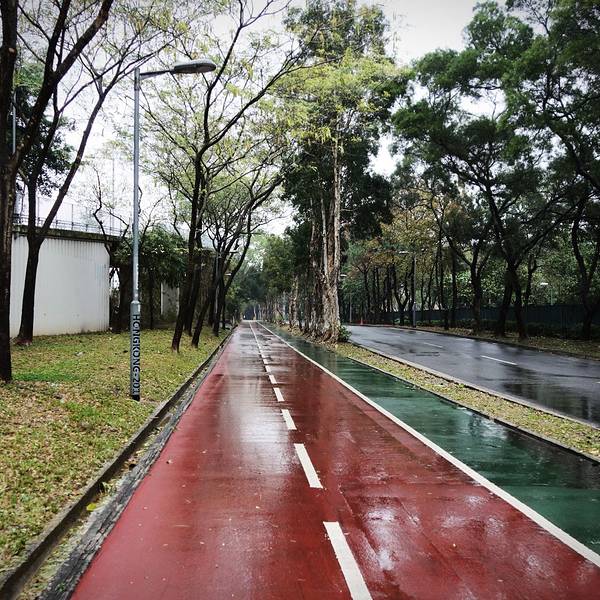 红色路面清楚地区分了单车径与普通道路,而且沿线每隔一段就会出现遮雨棚供车友休息,很是贴心方便。同时,这一路可以欣赏